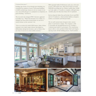 FBG markets its business with a combination of public relations, web content and lead generating software, Kevin noted. “Obviously custom home building is a referral business, but we want to feel in control of our message. The avenues we’ve chosen give us that control.”