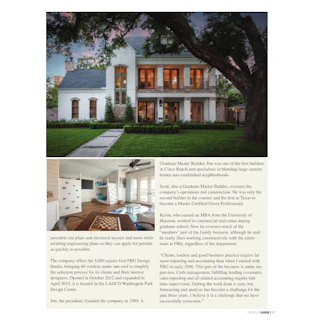 Kevin, along his father Jim and brother Scott, lead FBG and its 25 employees, which include builders, designers, realtors, accountants and field personnel.